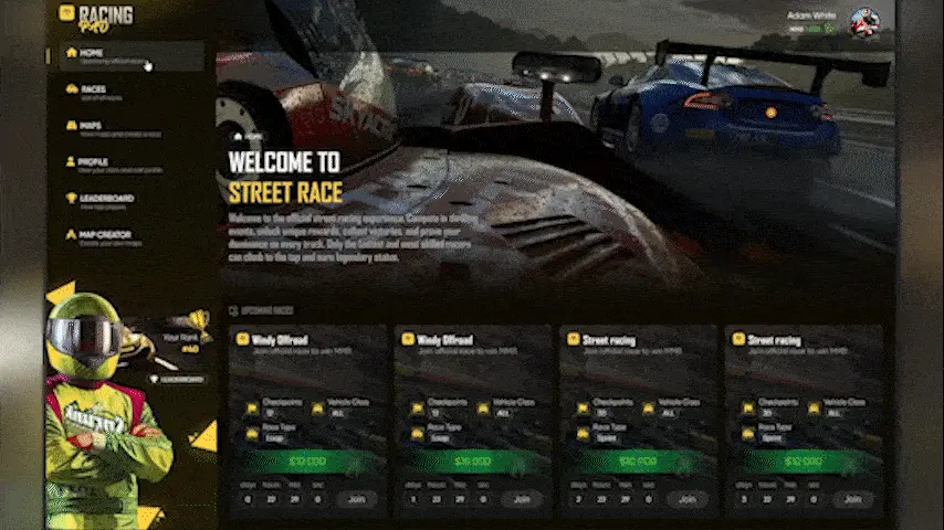 Racing App Interface