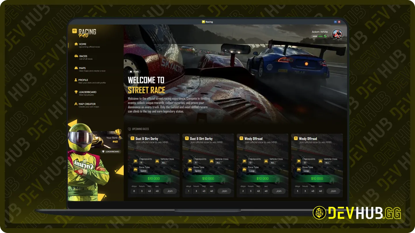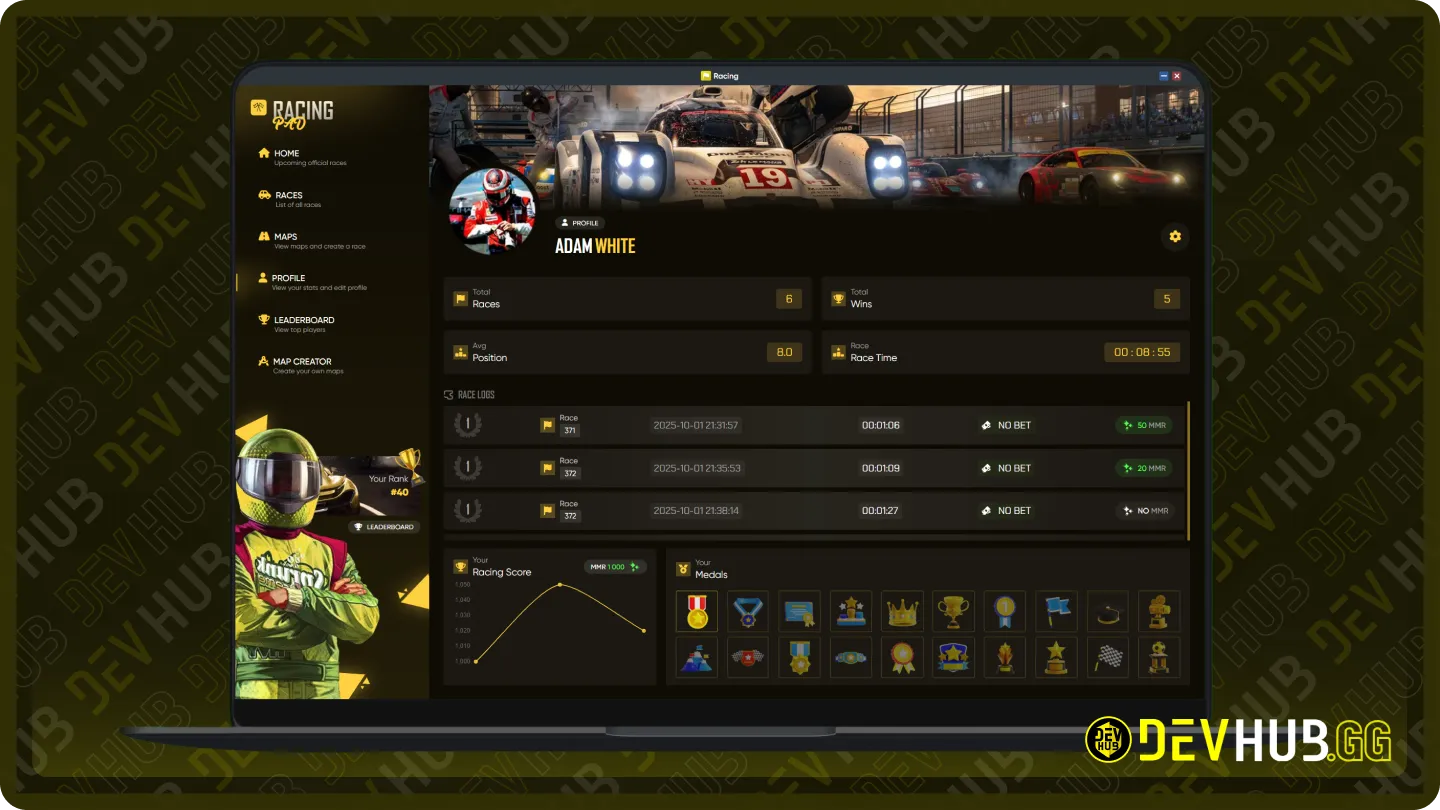 Manage profiles, join races, and track your MMR progress.