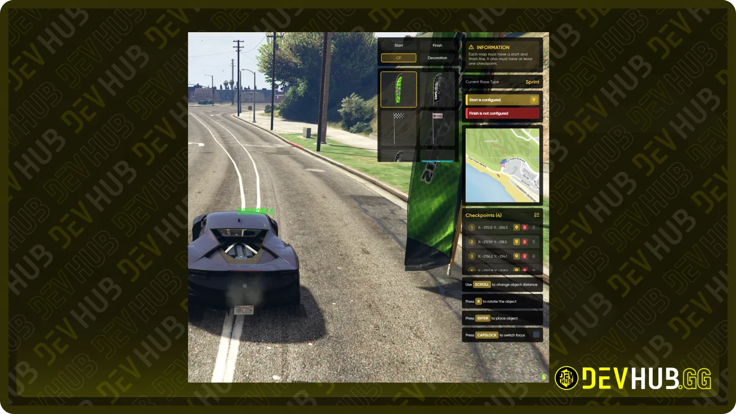 Add checkpoints, flags, and decorations directly on the street.
