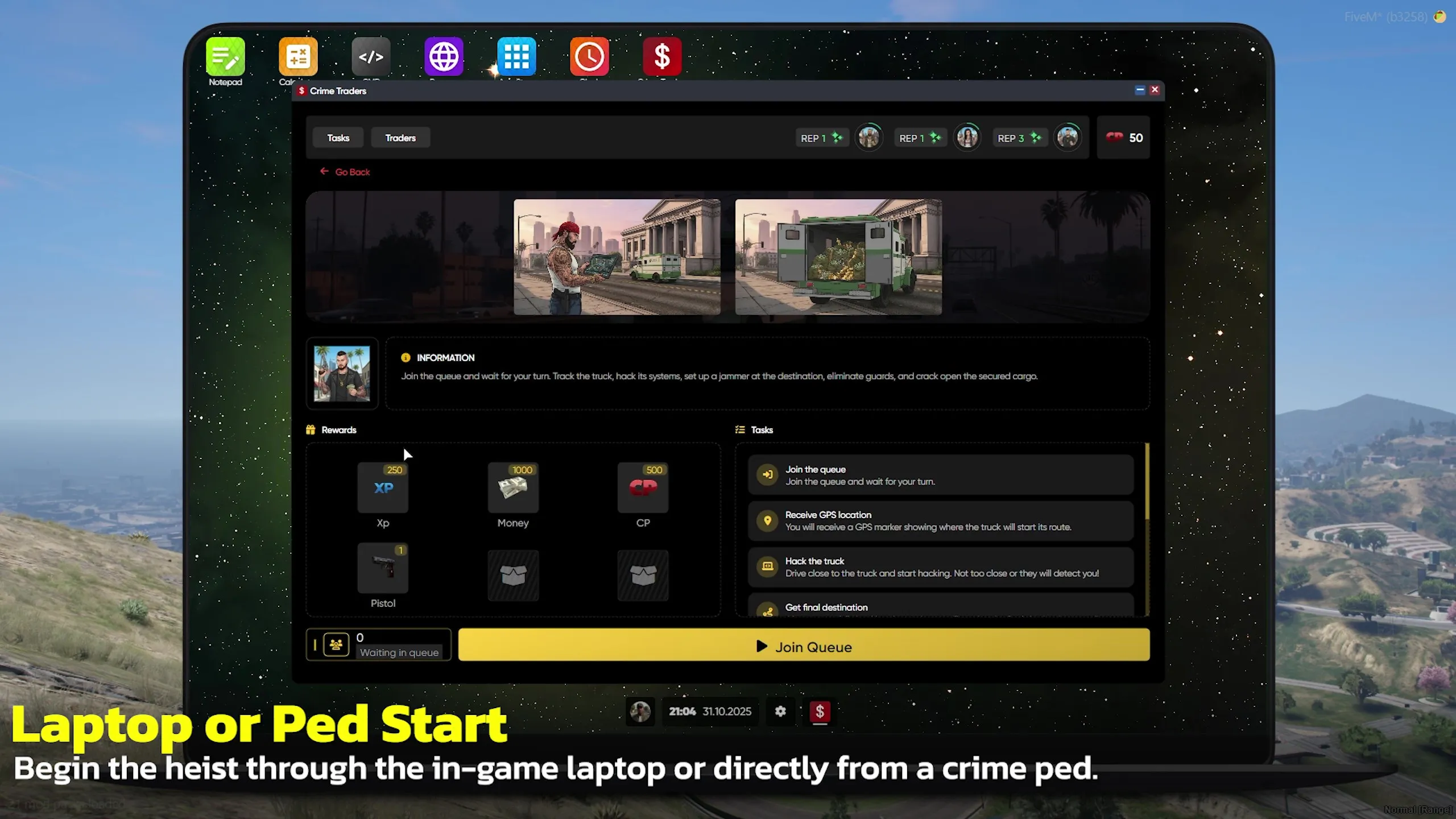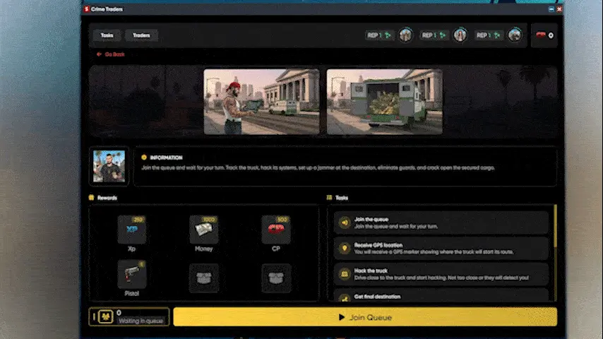 Exchange stolen goods for exclusive rewards and trader reputation.