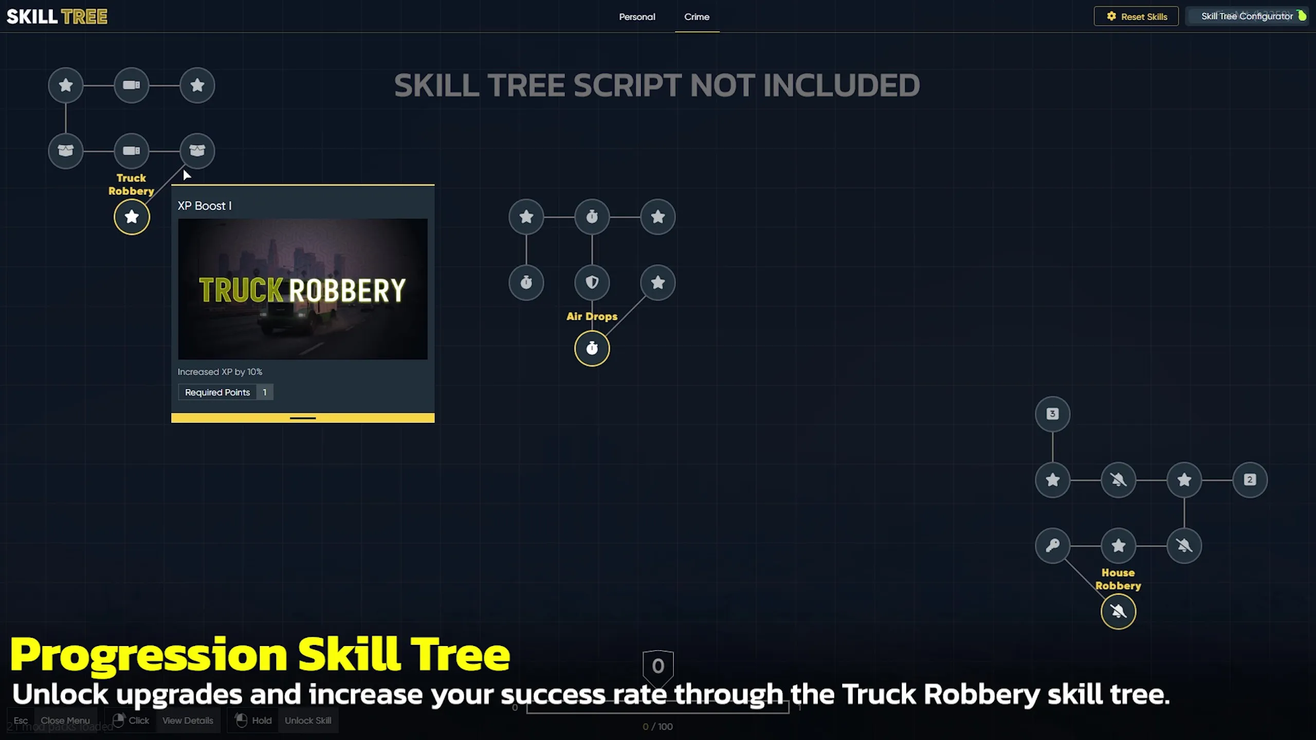 Note: The Skill Tree feature is an optional addition and is not included in the base package.