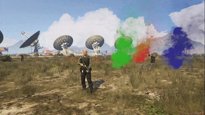 Each airdrop signals its arrival with vibrant smoke — but don’t get distracted, guards are already in position.