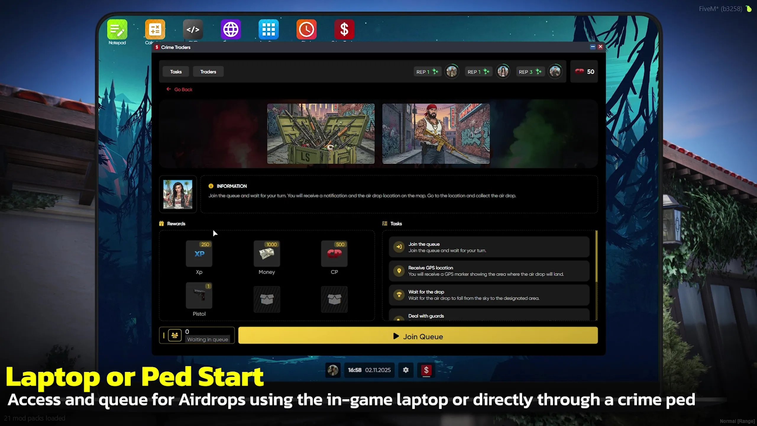 Players can easily access Airdrops via the in-game laptop or directly through a crime ped — making it flexible for any type of roleplay scenario.
