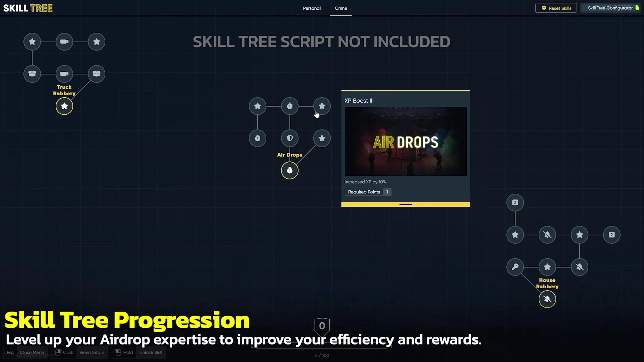 Note: The Skill Tree feature is an optional addition and is not included in the base package.