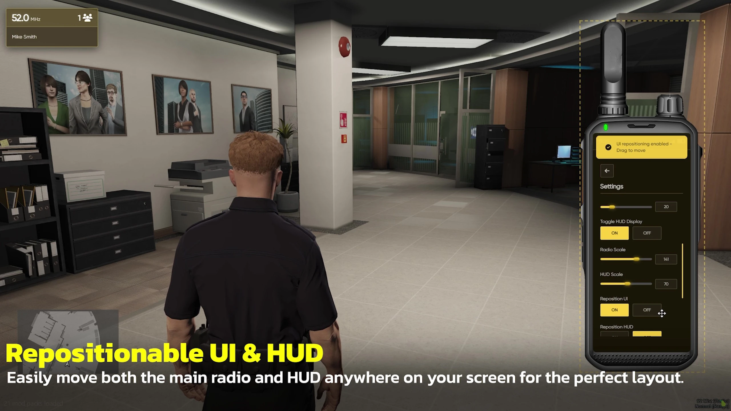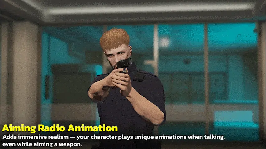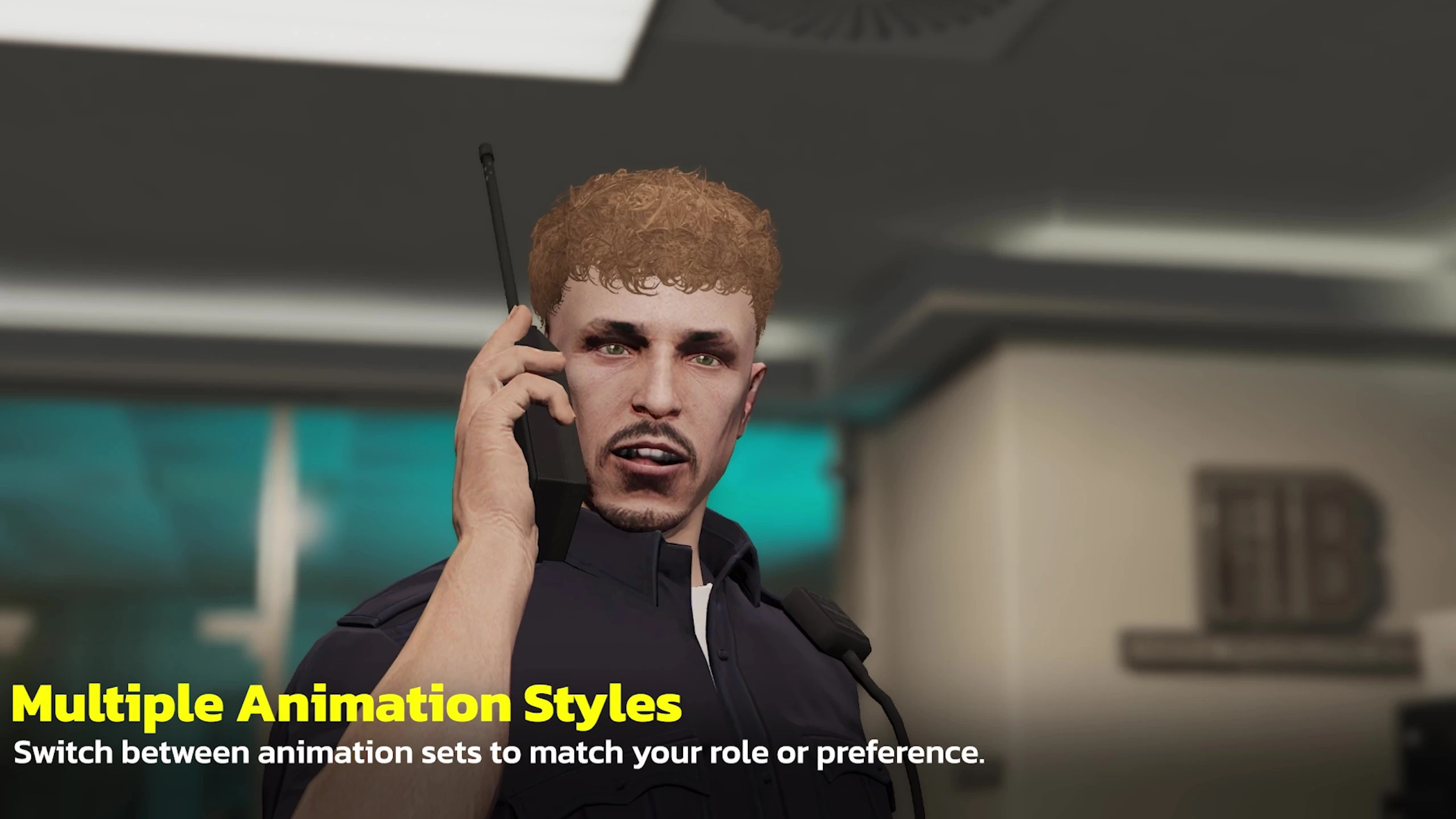 Enhance realism with selectable animation sets when using the radio. Perfect for police, civilian, or tactical use—pick what fits your character best.